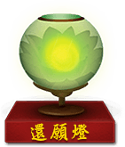如果曾在佛菩萨面前许下愿望并实现,通常需要再回到佛菩萨面前以虔诚恭敬心向佛菩萨还愿。还愿灯为实现愿望的人士向佛菩萨表达虔诚恭敬心,并对曾许下的愿望进行还愿。如此才能“礼尚往来”,种善因获善果。